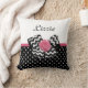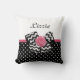 Breng je meisjesachtige huisdecoratiestijl naar voren met dit schattige zwart-witte stip-patroonpatroon met vierkant werpkussen met een trendy zwart-witte chevron-boog en een chique roze lint-roos. Je kunt deze roze en zwarte retro personaliseren met modern design door de naam van je tienermeisje toe te voegen. Vlak bedrukt afbeelding, NIET echt rozet lint en boog.