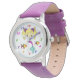 Dit is een schattig horloge voor een klein meisje, met een cartoon afbeelding van een blonde zeemeermin in roze met paarse bloemen in haar haar. Een paar heldergekleurde cartoon viert langs, en de multi kleurenaantallen maken het horloge gemakkelijk te lezen