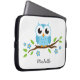 Een stijlvolle, gepersonaliseerde laptophoes met een afbeelding van een kleine blauwe uil op een aftakking met groene bladeren en blauwe bloemen. Voeg een naam of andere tekst toe. Cute en leuke vormgeving voor meisjes en vrouwen.