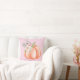 Kleine pompoen gooien kussens met een oranje perzikpompoen met roze en roomroomroze rozen en groene bladeren. Uw douanenaam wordt geschreven in een elegant hand lettered roze manuscript. U kunt de tekstkleur en de doopvontstijl en de grootte van de naam veranderen gebruikend de pas optie aan. Dit is perfect voor een baby shower of een eerste verjaardag!