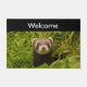 Welkom doormat met een schattige foto met een kleine bruine fret die opstaat in een lang gras. Zo snel mogelijk!