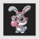 A charming cartoon bunny wearing oversized round glasses, a polka-dot bow, and blowing a pink bubble gum bubble.