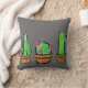 Een afbeelding van drie schattige cactussen met roze bloemen in kleine terracotta potten.