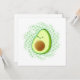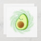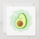 Een cartoon stijl avocado met een verstoord effect toegepast op de achtergrond. Gift idea voor volwassenen en kinderen die van avocado's en gezond voedsel houden. De kaart is leeg in de rug voor handgeschreven berichten.