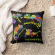 Creëer Een leuk persoonlijk cadeau voor fans van kameleons en andere reptielen. Dit kussen heeft cartoon stijl illustraties van kameleons in heldere en levendige kleuren tegen een zwarte achtergrond, en is klaar om te worden gepersonaliseerd met een naam of andere tekst in lime groene letters.