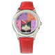 Cute Cat Black en White Tuxedo Illustration Red Horloge