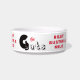 Koel water of voerbak voor uw katten! Het woord "Cats" is geschreven in leuke typografie, met de "C" met een silhouet van een zwarte kat. U kunt gemakkelijk personaliseren met de namen van uw katten in het rood. Een andere versie is beschikbaar voor één kat.