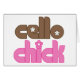 Cello chick Muziek logo in roze en chocoladebruin maakt een gedenkwaardig geschenk voor elke cello musicus.