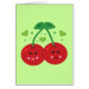 Deze heerlijk kawaii-kersen illustratie bevat twee glanzende rode kersen met schattige glimlach, roze wangen en rijke groene bladeren omringd door zoete kleine groene harten! Dit leuke kersenontwerp is het perfecte cadeautje voor iedereen die van kersen houdt, van kawaii-kunst, van cartoon of van stijlvolle leuke kunst!