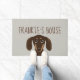 Doxie Lover's Welcome Mat. Deze schattige Dachshund-welkomstmat kan gepersonaliseerd worden met jouw naam of slogan. Grappig gladde chocolade Dachshund met ogen omhoog. Het maakt een prachtig cadeau voor een huisopwarmingsfeest, nieuwigheden, feestdagen en zo vaak mogelijk. Bezoek Jenn's Doodle World voor nog meer wiener-hondenslaapzalen en Dachsie-decor.
