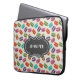 Gepersonaliseerde laptophoes met een schattig patroon van macaronen in vele verschillende kleuren met een zwak poka-punctiepatroon achter. Een fancy -uitziend grijs en wit decoratief lijst met jouw tekst binnenin.