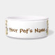 Kute dog food gerecht, met schattige landafbeeldingen van een bruine en beige hond, met een bot in zijn mond. Met een bruine aangepaste tekst kunt u uw huisdier aanpassen met de naam van uw huisdier, want een gepersonaliseerde kom waar uw huisdier trots op kan zijn. Het maakt een geweldig cadeauidee.