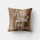 Hier woont een verwende, geliefde hond. Trendy gouden koperen achtergrond met gemengde typografie, "Een verwende geliefde hond woont hier" Paw print accenten. Voor de hondeneigenaren en hondenliefhebbers. Quote Life Boutique