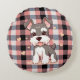 Voeg een vleugje eigenzinnigheid en comfort toe aan uw huis met dit schattige ronde kussen! Met een schattige Schnauzer-puppy op een stijlvol roze en zwart buffelcontrolepatroon, is dit kussen het perfecte accent voor elke bank, stoel of bed. Het speelse pootafdrukdetail voegt een extra laag charme toe, waardoor het een must-have is voor elk hondenliefhebber of voor iedereen die een pop van persoonlijkheid aan hun decor wil toevoegen.