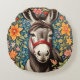 Cute Donkey On Colorful Floral Background Rond Kussen