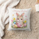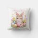 Cute bunny rabbit with pink blush peony flowers watercolor party throw pillow. Perfect for Easter.