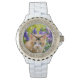 Een mooie kitten op een rots in een bloeiende tuin. Een schattige jonge rode baby kat met prachtige blauwe ogen, foto genomen door Katho Menden. Dit neushorloge voor vrouwen met een wijzerplaat-bord is een cadeauidee voor katten- en dierenliefhebbers. http://www.zazzle.com/kathom_photo - Als je een ontwerp ziet dat niet beschikbaar is op je gewenste product, aarzel dan niet om contact met me op te nemen via mijn winkel en ik zal het product graag voor je creëer.
