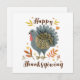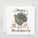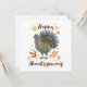 Thanksgiving wenskaart met de woorden "Happy Thanksgiving" en kleurrijke kalkoen. Voeg je eigen bericht aan de achterkant toe.