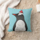 Cute Gentoo Penguin die een kersthat op blauw heef Kussen