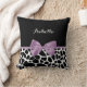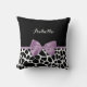 Een schattige zwarte en witte girafdruk gooit kussens met een meisje lavender paars lint gebonden in een vrouwelijke boog. Pas dit ontwerp van dierlijke afdruk aan door jouw naam toe te voegen. De omgekeerde kant heeft een zwart-wit girafpatroon. Platte afbeelding, geen echte boog.