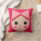 Een schattige kawaï-achtige meisjeskussen met een geïllustreerd schattig meisje met boeg in haar haar en harten op haar wangen in roze kleuren. Maakt een perfect cadeau voor vrienden, dochters, of iedereen die je kent zal van het kussen van het gezicht van dit schattige meisje houden in roze kleuren.