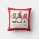 Schattigee gepersonaliseerde vakantie rood en groen omkeerbaar kussen met drie grappige Scandinavische stijl kabouters met een seizoensgebonden rood en groen pet. U kunt de "Merry Christmas"-begroeting en jouw naam onderaan gemakkelijk personaliseren of leeg laten.