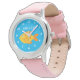 Kute goudvis kind watch gift met aangepaste naam of monogram letters. Het kutsen van een zee met een mascot-klokontwerp voor kleine kinderen om tijd te houden. Beste kerstcadeauideeën en cadeauideeën voor kinderen. Maak er een voor dochter, kleindochter, zoon, kleinzoon, nieuwe baby, kleinkind enz. Grappig gouden cartoon voor kinderen. Meisjes roze, blauw of ander kleurenlederband.