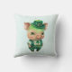 Een kussen met een schattige groene illustratie van een varken dat op zijn achterpoten staat, gekleed in fancy pet, vest en broek. Zeer schattig en perfect geschikt voor St. Patrick's Day.