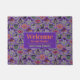 Deze Halloween-deurmat heeft een leuk gebreid truitjespatroon dat is gebaseerd op het thema van klassieke Fair Isle-gebreide design. Het patroon bestaat uit paarse en groene cirkels en diamantstrepen. Elke vorm heeft een ander leuk Halloween motief. Je hebt een zwarte poes met een maantje, Frankensteins hoofd, vrolijke jack o’ lantaarn pompoen, schedel met rode oograaf, heksen pet met poten, grafveld met spoken, vampierlippen/gebit met vleermuizen en een gepekelde heksentuin met een maanboom de herfst met een vleermuis. Tussenin de design zijn snoepmais, gewikkeld snoep en een diamantontwerp. Bovenaan staat een gebied dat Welkom bij ons huis en het gezin zegt. Personaliseer dit met uw eigen begroeting en familienaam.