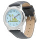 Cute happy green brontosaurus dinosaur cartoon horloge