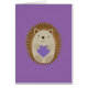 Egels liefde. Cute egel houdt een paars hartontwerp vast.