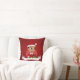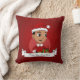 Drog kussens met een afbeelding van een schattig glimlachend hispanic/Latino-jongen met kort zwart haar draagt de jongen een kerstkleed met een rood pet en houdt een cadeau vast; in een rode cirkel op een rode achtergrond, een ontwerp van kerstmis met een bewerkbare sjabloon voor jouw naam of een bericht