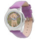 Een jonge gouden roestkleurige Vizsla puppy leunend merkwaardig tegen een knobbyboomstam. De Hongaarse of Magyar Vizsla is een hondenras voor de jacht. Een schattige foto gemaakt door Katho Menden. Dit horloge voor kinderen met een wijzerplaat-bord is een cadeauidee voor hondenliefhebbers.