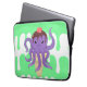 Een zeer schattige paarse octopus in kawaï, in een ijsje, met chocoladestroop en een kersen bovenaan. Hier gezien op een sleeve met groene en witte strepen