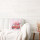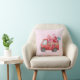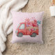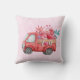 Een kussen met een schattige rode waterverf vrachtwagen. Draag harten en bloemen achterin. Ik hou van je, aan de zijkant geschreven. Fantastisch en schattig. Licht roze gepatterde achtergrond.