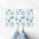Een deurmat met een grillig patroon met schattige lachende walvissen die vrolijk zwemmen in het zee.