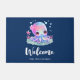 Welkom doormatten met een afbeelding van een schattige, jonge octopus met een bloem op haar hoofd. Grote heldere ogen en een vriendelijk gezicht.