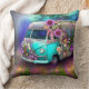 Cute old rusty Combi van bloemen Lake 1970s hippy Kussen