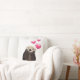 Een kussen met een afbeelding van een schattige otter met harten die naar boven drijven. De harten zijn roze en mollig uitziend met een glanzende reflectie. Deze otter is vrij schattig met zijn poten die onder zijn harige kleine kin rusten. Zijn vacht ziet er nat uit door in het water te hangen.