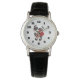 Een horloge met een schattige waterverf tekening. Een schattig zwart-wit panda beer met een boeket rozen. Grijs met witte polka stippen achtergrond.