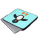 Deze geweldige laptoptas heeft een schattig pinguïn-personage met een witte buik, grote blauwe ogen met zwarte pupillen en schattige oranje voeten en bek. Deze charmante kleine wintervogel is zeker om kinderen en volwassenen te verwelkomen. De pinguïn zit op een ijzige bleke blauwe achtergrond om hem te herinneren aan zijn kinderlijke Artische thuis.