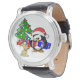 Cute Penguin Santa en Reindeer Dog Horloge
