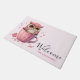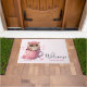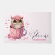 Welkom doormat met een schattig afbeelding van een uil in een koffiehuis mok. Harten die rondhangen en één enkel roos dat onderaan de beker wordt geplaatst.