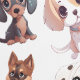 Een schattig Puppy Dog patroonontwerp met waterverf-illustraties van verschillende hondenrassen zoals, Dalmatiër, Duitse Herder, Bulldog, Pug, Poedel, Spaniel. Een mooie schattige behang voor doggy salon, trimmers, dierenartsen, slaapkamers voor kinderen en kinderkamer.