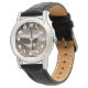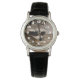 Een horloge met een foto van een schattig en nieuwsgierig wasbeertje dat zijn gezicht op een houten log rusteert. Schattig.