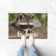 Cute Raccoon Resting on a Log Welcome Deurmat