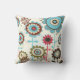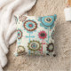 Kute retro turquoise blauw floreel patroon gooit kussen. Het bevat een prachtig patroon van abstracte bloemen in turkooisblauw met een bruine omtrek op een bleke blauwe achtergrond.
