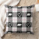 Cute roze zwart-wit Beer en hartflatel Kussen