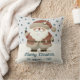 Cute Santa Clause Snowflakes Drawing Christmas Holiday Throw Pillow. A cozy, Boho-inspired Christmas home+decor featuring cute drawing of a Santa Claus on a snowy hill. Soft earthy tones such as terracotta, cream, and green. Delicate snowflakes are scattered across the pillow, adding a touch of winter magic. The text 'Merry Christmas' is in elegant script. The overall aesthetic exudes a warm, rustic, and modern Bohemian feel, perfect for a stylish yet festive holiday look. Add your name and year.