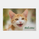 Een mooie baby hallo kat met prachtige ogen miaows en zegt:, zo'n charmant en betoverend kitten gezicht, deze deurmat Welkom is een cadeau idee voor kat- en dierenliefhebbers. Een grappige kat mauw foto gemaakt door Katho Menden.